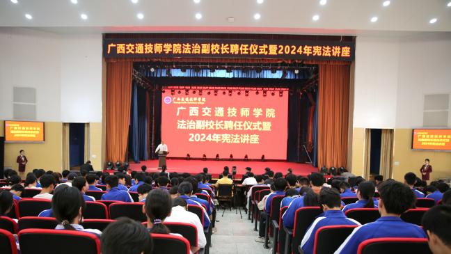 今年是中華人民共(gòng)和國成立75周(zhōu)年,12月4日是第十一個國家憲法日。為(wéi)深入學習貫徹(chè)黨的二十大和二十屆(jiè)二中、三(sān)中全會精神,全麵貫徹落實習近平法治思想和習近平總(zǒng)書記關於廣(guǎng)西工作論述的重要(yào)要求,大力加強憲法宣傳教育、弘揚憲法精神,進一(yī)步加強我院憲法法治宣(xuān)傳教(jiāo)育(yù)工作,提升全院師生(shēng)的法治素養,營造濃厚(hòu)的校園法治氛圍,促進(jìn)法治校園建設,結合學院實際,91.com技師學院(yuàn)邀請南寧市興寧區人(rén)民檢(jiǎn)察院第一檢(jiǎn)察部副主任、一級檢察(chá)官龐忠琳於12月4日下午走進校園為我院師生開展了一堂主題為《播撒(sā)法治火種 點燃青春夢(mèng)想》憲法專題講座。學院教師代表及學生代表(biǎo)共計700多人在學院禮堂認真聽取了該憲法專題講(jiǎng)座。
