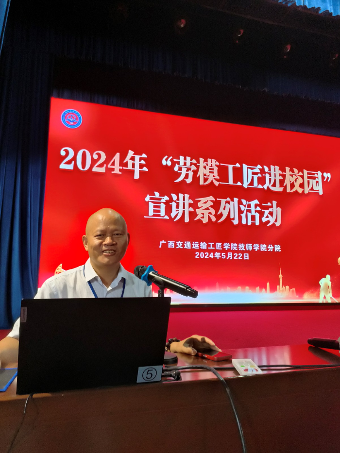 全國交(jiāo)通教育優秀中青年教師、廣西壯族自(zì)治區優秀教(jiāo)師、廣西(xī)交通運輸(shū)工匠張(zhāng)磊宣講