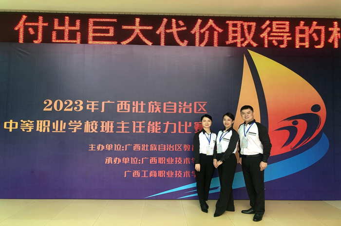 我院侯(hóu)林倩、黃煒、羅萬(wàn)慶三(sān)位教(jiāo)師組成的班主任團隊經(jīng)過層(céng)層選拔、激烈角逐,榮獲2023年廣(guǎng)西壯族自治區中等職業學校班主任能力比賽二等獎!這(zhè)是(shì)我院(yuàn)班主任團隊在班主任能力比賽中(zhōng)取得的重大突破。