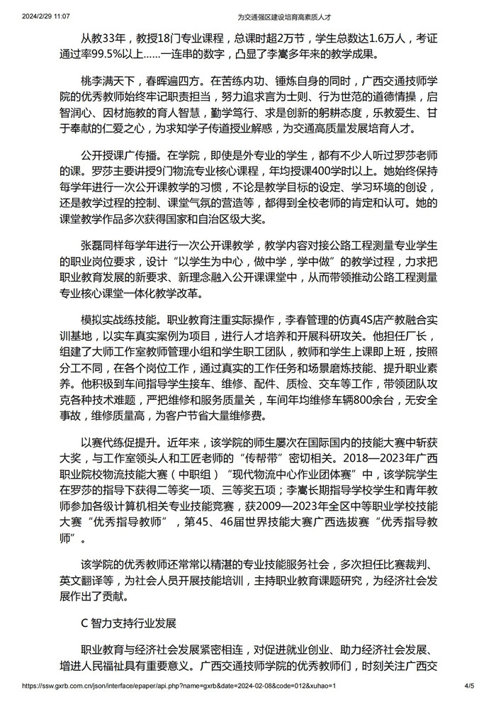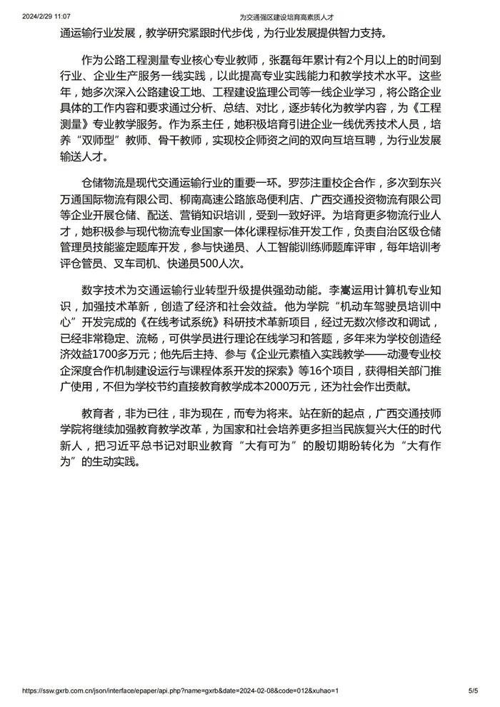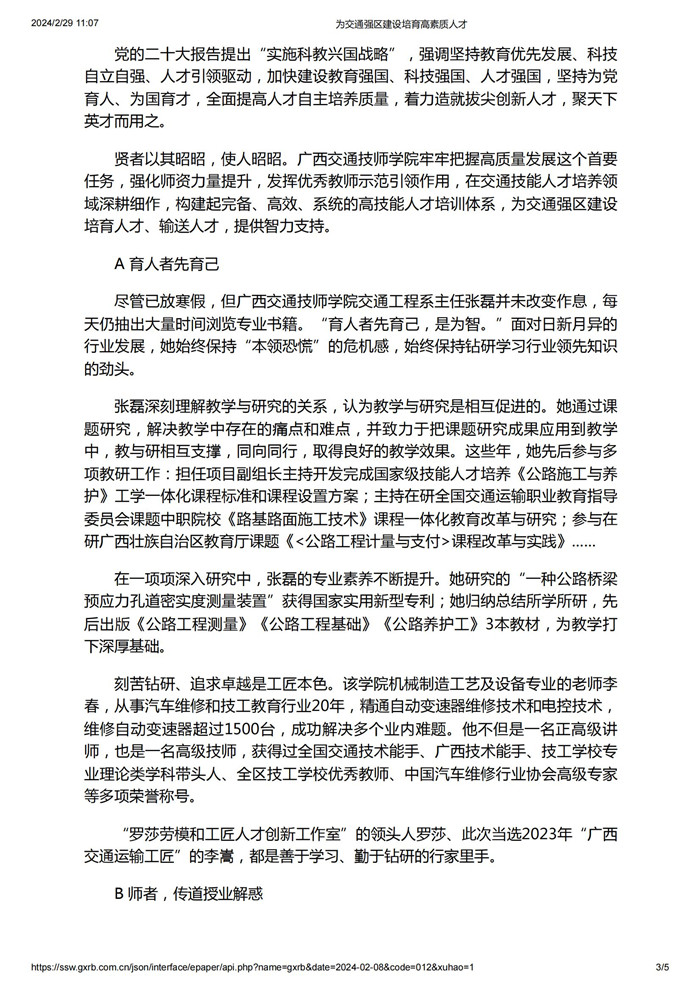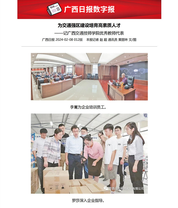 廣(guǎng)西日報:為交通強區建(jiàn)設(shè)培育高素質人才——記91.com技師學院優秀教(jiāo)師代表