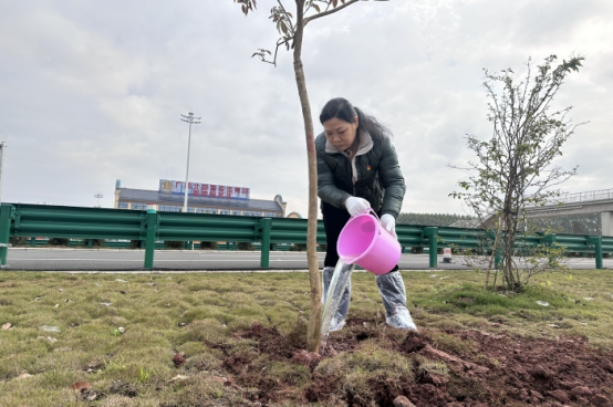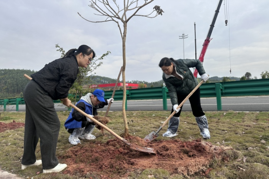在位於(yú)南寧至湛江高速公路那樓服務區(qū)的義務植樹點,植樹現場,我院師生幹勁十足,揮鏟挖土、扶樹正苗、培實新土,用(yòng)心種(zhǒng)下(xià)了一株株紫色風鈴樹苗。大家齊心協力用實際行動增添了一片生機勃(bó)勃的綠色。