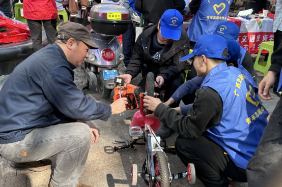 我院誌願者師生幫助社區居民維(wéi)修自行車