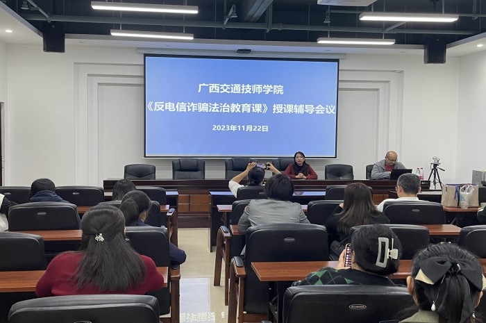 11月22日,基礎學科(kē)部(bù)牽頭(tóu)組織“大思政課”第(dì)二課堂(táng)講師團隊在邕武校區綜合(hé)樓二(èr)樓會議室召開反電信詐騙法治教育第二課堂授前輔導會,跟進貫徹落實國家打擊治理電信網絡新型違(wéi)法犯罪工(gōng)作部署,持續(xù)深化(huà)學院學生教育管理工作,預防校園電信詐騙違法犯罪。基(jī)礎學科部副主任許宜(yí)昕主持會議,審計科(kē)副科長(zhǎng)黃有洪參會並作說課輔導。