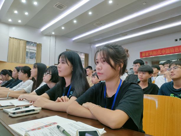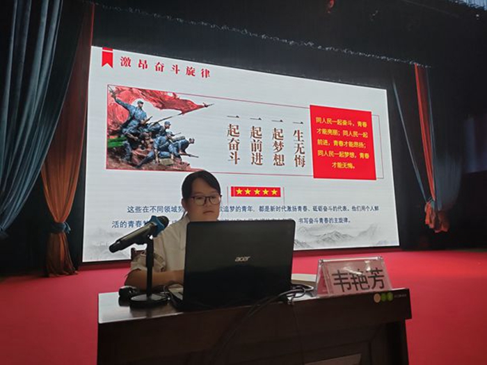 學院團委(wěi)書記韋豔(yàn)芳給(gěi)同學們上主題團課