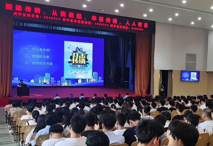 為(wéi)貫(guàn)徹落實國家(jiā)市場監管(guǎn)總局關(guān)於打(dǎ)擊傳銷工作的要求,切實保護全院師生的人身財產安全,9月20日下午,我院聯(lián)合南寧市打傳辦、興寧區市場監管局、市公安局興寧分局、興(xìng)寧區城管局等相(xiàng)關單位,在邕武校區禮堂開展主題為“警惕傳銷陷阱,創造和諧校園”的校(xiào)園防範傳銷宣傳教育活(huó)動。