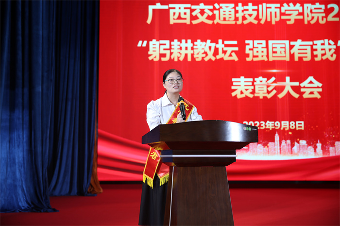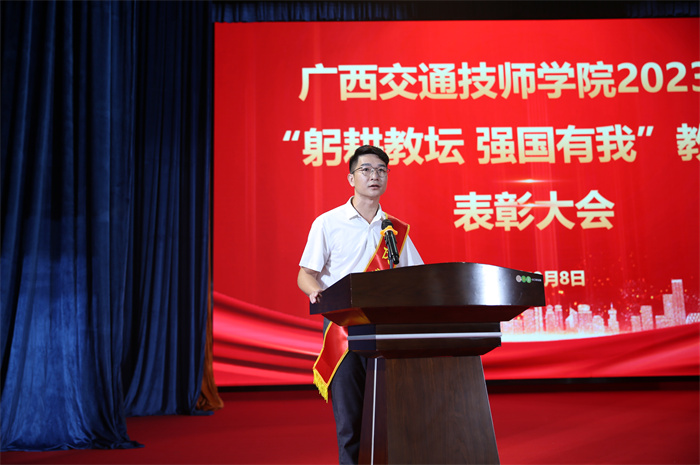 陳津維向辛勤工作在交通職業教育戰線上(shàng)的(de)全體教職工表示節日的祝福和親切的問候,對剛剛(gāng)獲得(dé)表彰的優秀教師、優秀教育工作者和(hé)優秀班主任表示熱烈(liè)的祝賀。他指出廣西(xī)交通技師學院作為全區(qū)唯一(yī)一所交通(tōng)運輸類技(jì)師學院,要(yào)以“雙(shuāng)優計劃”為契機(jī),搶抓機遇,勇於創新,力爭把學院建設成為(wéi)交通職業教育的“廣西樣板”;加快推進產(chǎn)學研用深(shēn)入融合,實現(xiàn)學(xué)院的創新發展;聚焦交通強區建設,主動融入新(xīn)發展格局,辦好(hǎo)優勢(shì)專業,培養更多符合交通強區建設需要的具有工匠精神和高水平技能的專業型人才,為服務廣西(xī)經濟社會發展貢(gòng)獻交通力量。