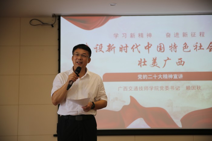培訓(xùn)班第一(yī)課上,賴國秋帶領學員們深入(rù)學(xué)習黨的二十大精神,緊緊圍繞習近(jìn)平總書記(jì)在參加黨(dǎng)的二十大廣西代表團討論(lùn)時提出的“五個更大”重要要求,引導參訓學員深刻領悟“兩個確立”的決定性意義,進一步增強“四個意(yì)識”、堅(jiān)定“四個自信”、做到“兩個維護(hù)”;同時從加強教師職業(yè)道德(dé)建設的(de)重要意義、教師職業道德規範及相關的法律規(guī)範(fàn)、師德師(shī)風建設中存在的問題、師德師風建設的要求等四個(gè)方麵(miàn),對新(xīn)時代的師德師風建設內容進行專題授課,要求各參訓學員要爭做有理想信念、有道德情(qíng)操、有紮實學識及仁愛之心的“四有”好老師。