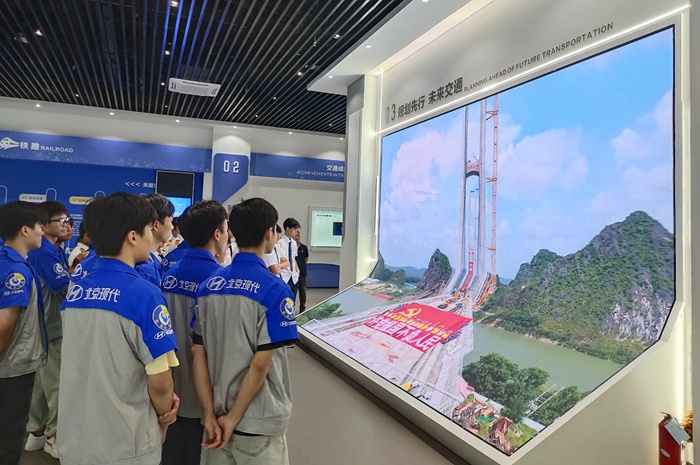 我院師(shī)生在現場工作人(rén)員的帶領(lǐng)和細(xì)心講解下,參(cān)觀了科普基地展廳內鐵路、公路、水運、郵政和航(háng)空等展區,認識(shí)廣西區內具有(yǒu)鮮明特色的(de)高速鐵路、高等級公路、大跨徑橋梁、特長隧道、大型(xíng)航運樞紐、內河水運(yùn)、港口碼頭工(gōng)程、民用航空和數字(zì)交通的建設發展成果,了解其關鍵技術的源流演變、未來趨(qū)勢和全區綜(zōng)合交通運(yùn)輸體係的基本情況。