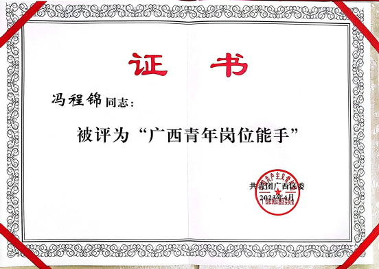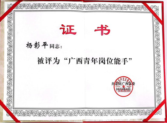 我院教師楊(yáng)彰平(píng)、馮程錦(jǐn)被授予(yǔ)"廣西技術能手"榮譽(yù)稱號(hào)