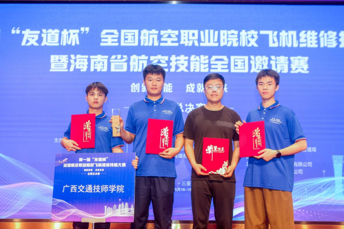 5月17日至18日,“第一屆‘友道杯’全國航空職業院校飛機維修技能大賽”在三(sān)亞航空旅遊職業學(xué)院舉行(háng)。我院民用航空係的佀(shì)峰宇、吳朝培、羅仁祥三(sān)名(míng)同學在全國28支參賽隊伍(wǔ)中脫穎而出,獲得全國二等獎,杜毅、韋奕(yì)成獲得優秀指導教師稱號。