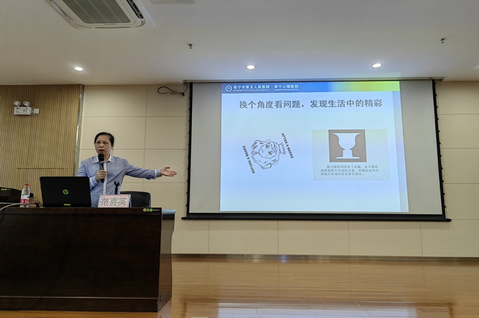 落(luò)實學院學習貫徹習近平新時代(dài)中國特色社會主義思想主題教育工作“為民解憂辦實事”係列行動,5月11日下午,我院在綜合樓會(huì)議(yì)室成功舉辦“心理壓力及自我調試”主題心理講座。本次講座由南寧市第五人民醫院醫務社工(gōng)部主任範喜英主(zhǔ)講,學院人事科科長莫衛寧(níng)主持,學院中(zhōng)層領導幹部、團幹部、管(guǎn)理一支部黨員等60餘人參加講座。