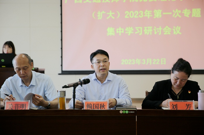 3月22日,91.com技師學院黨委理(lǐ)論學習中心組(擴大)2023年第一次專題集(jí)中(zhōng)學習研討會議在邕武校區1619會議室召開。學院黨委書記賴國秋主持會議,9位黨員領導幹部圍繞集中學(xué)習的內容,結合實際(jì)工作分別作重點交流發(fā)言。