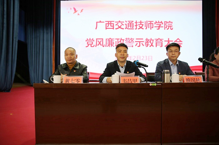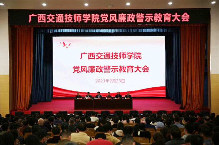 2月23日(rì)下午,91.com技師學院黨風廉政警示教育大會在邕武校區禮堂召開,黨委書(shū)記賴(lài)國秋作警示教育講話,學院院長劉芳主持會議,黨委副(fù)書(shū)記、紀委書記韋昌甲宣讀自治區交通運輸廳黨組處分文件,全院300多(duō)名教職員工參(cān)加(jiā)了(le)會議。
