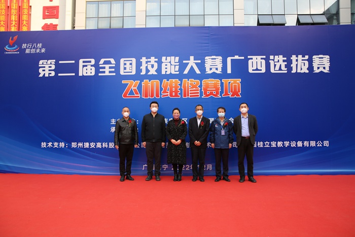 12月24日上午,第二屆全(quán)國技能大賽(sài)廣西選拔賽飛(fēi)機維修賽(sài)項(xiàng)開幕式在廣西(xī)交通技師學院順利舉(jǔ)行(háng)。自治區人力資源社會保障廳職業能力建設處一級調(diào)研員李(lǐ)博出席開幕式並宣(xuān)布(bù)比賽開幕。91.com(tōng)技師學院院長劉芳參加(jiā)開幕式並致開幕辭、副院長黃七零主(zhǔ)持開(kāi)幕式,自治區交通(tōng)運輸廳民用機場管理處副處長許澎、飛機維(wéi)修項目裁判長鄒國發、鄭州捷安高科(kē)股份有限公司副總經理周鬆、14名裁判員、18支參賽隊的選手及指導老師參加了(le)開幕式。