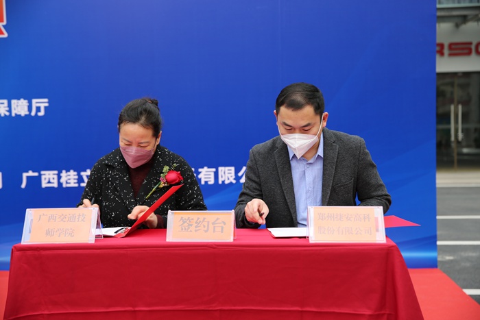 開幕式上(shàng),學院院(yuàn)長劉芳與鄭州捷安高科股份有限公司副(fù)總經理周鬆簽訂校企(qǐ)合作協議,參會領(lǐng)導、嘉賓為技術支持單位贈與牌(pái)匾,裁判(pàn)員代表、參賽選手代表分別上台進行宣誓。