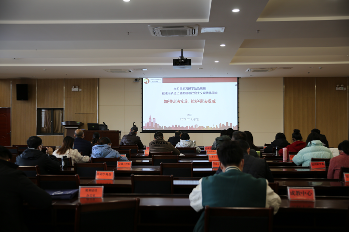 周正結合工作中的具體案例,圍繞憲法的發展體現新時代法治現代化、為什麽要(yào)維護憲法的核心地位、如何維護憲法權威、加強憲法實施助力法治(zhì)中國等四個方麵進行講授,引導廣大(dà)幹部職工深入學習宣(xuān)傳貫徹黨的二十大精(jīng)神、習近平法治思想及習(xí)近平總書記關於憲法的重要論述,幫助廣大幹部職工進一步領會好、理解好(hǎo)、把握好憲法。
