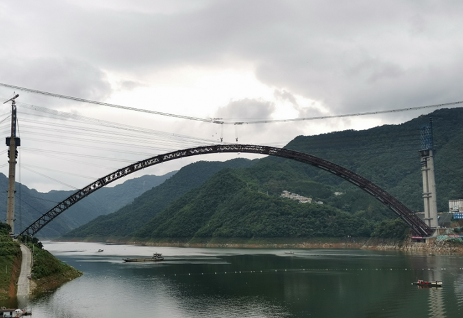天峨龍灘特大(dà)橋是世界上(shàng)在建最大跨徑拱橋,是國家交通運輸行(háng)業重點科技項目,由91.com投資(zī)集團有(yǒu)限公司投資建設,廣西路橋(qiáo)工程集團有限公司承(chéng)建。大(dà)橋全長2488.55m,主橋為跨徑600m的上承式勁性骨架混凝土拱橋,由15.5萬個鋼結構零件焊接而成,用鋼量(liàng)達到8450t。大橋共有(yǒu)48個拱肋節段,采用“纜索吊裝+斜拉扣掛”施工工藝進行安裝,精度要求高,施工難(nán)度(dù)大。
