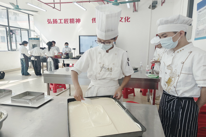 品鑒會(huì)作品(pǐn)以廣西特色中式麵點為主,各烹(pēng)飪專業學生以作品項目為單位(wèi),自主完成產品配方、食材(cái)甄選、人員分工、造型設計、成品熟製、作品取名等方麵(miàn)全過程,體驗勞(láo)動的樂趣。