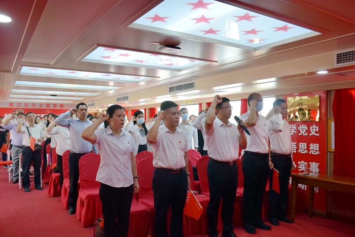 為迎接二十大的勝利召開,深化黨史學習教育,重溫紅船精神,進一步增強黨支部的凝聚力和戰(zhàn)鬥力、發揮黨員(yuán)幹部的先鋒模範作用。10月12日下午(wǔ),學院管理第一黨支部、交通工程係黨支部、信息工程係黨支部、商務服務係黨支部、民用航(háng)空係黨支部、基(jī)礎學科部黨支部共84名在職黨員赴邕(yōng)江(jiāng)紅色主題遊船,開展主題黨日活動。