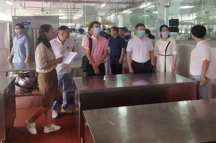 驗收專家組在烹飪(rèn)專業實訓場地進行現場考察