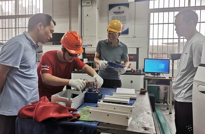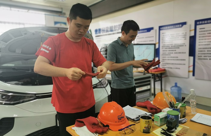 選拔賽共設置“新能源汽車故障診斷”“電池及電源係統檢修”“充電樁的調試”三個項目,從教師專業(yè)技能水平、職業素養、體力精(jīng)神等方(fāng)麵進行(háng)考核。係部(bù)6位青年教師同台競技,角逐2022年廣西中職學校新能源汽車檢測與維修教師技能競賽的參賽資格。