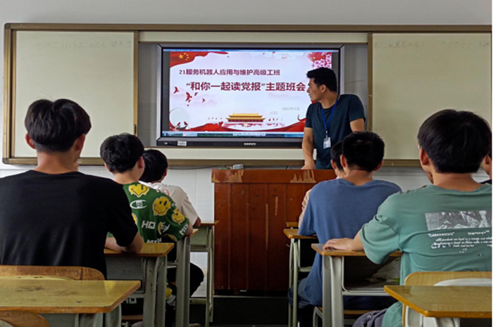 2021級服務機器(qì)人應用與維護高級工班“和你一起讀黨報”主題班會