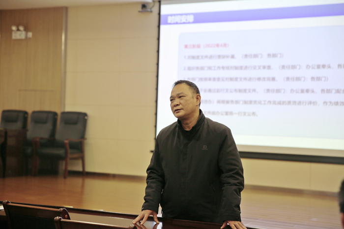 辦公室副主任楊華對製(zhì)度文件的分類及處理方(fāng)法作說明