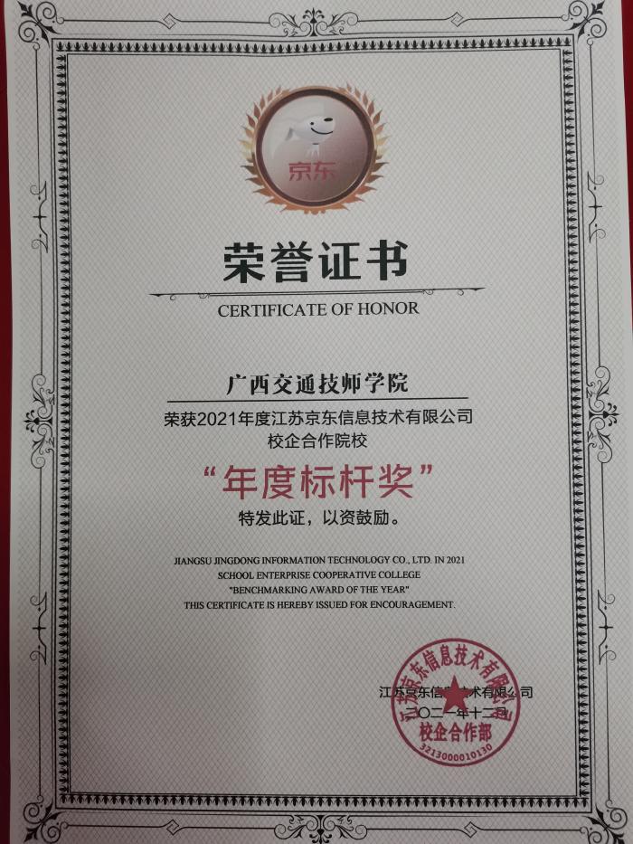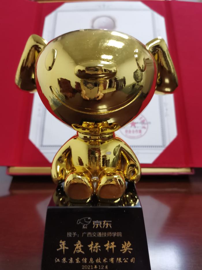 廣西交(jiāo)通技師學院(yuàn)2021年度京東校企合作標杆獎獎杯(bēi)
