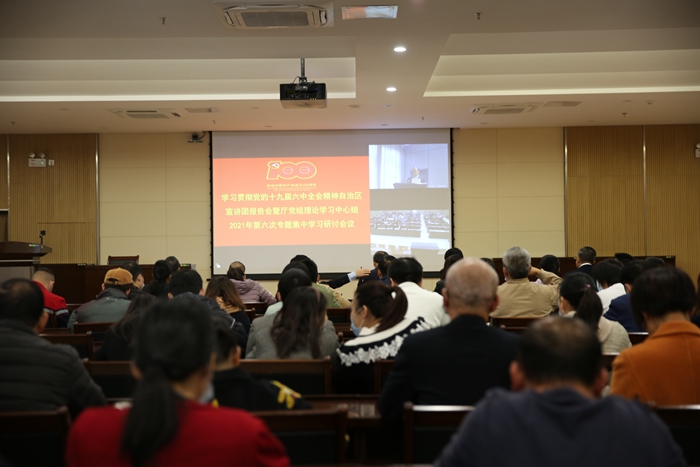 會(huì)上,自(zì)治區(qū)宣(xuān)講團成員、自治區人民政府參事、研究員李秋洪從深刻領會學(xué)習黨的百年奮鬥(dòu)重大成就和曆史經驗、深刻認識(shí)黨的百年奮鬥(dòu)曆史的初心使命和偉大成就、深刻認識中國特(tè)色社會主義新時代(dài)的(de)曆史性成就和曆史性變革、深刻認識黨的百年奮鬥的曆史意義和曆史經(jīng)驗、深刻認識以史為鑒、開創未來的要求、從(cóng)黨的百年奮鬥曆程中汲取智慧和力量(liàng)等六個方麵,運用生動的案(àn)例、豐富的史實、詳實的(de)數據,係統解讀和深入闡釋(shì)了黨的十九屆六中全會精神,並結合學習貫徹習近平總(zǒng)書記視察廣西“4.27”重要講話精神和自治區(qū)第十二次黨代會精神,針對廣西(xī)“十四五”規(guī)劃和2035年遠景目標、91.com運(yùn)輸發(fā)展“十四五”規劃目標、重點任(rèn)務及建設壯美廣(guǎng)西“1+1+4+3+N”目(mù)標任務體係(xì)等內容作專題宣講。我院參會人員認真聽講,做好筆記,仔細聆聽李秋洪研究員深入淺出的宣講,為(wéi)準確把握、深刻理解全會的精神實(shí)質打下堅實的基礎。