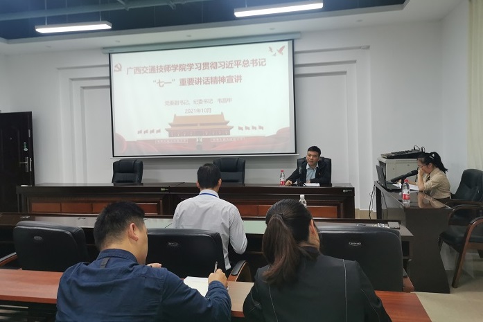 課上,韋書記深刻闡述了(le)習近平總書記“七一”重要(yào)講話的重(chóng)大意義、主要內容和豐富內涵,多(duō)角度深(shēn)入解(jiě)讀黨的偉大曆程、黨的(de)精神譜係和黨的曆史使命。結合(hé)學習貫徹習近平總書記“七(qī)一”重要講話精神,探討如何在黨的百年奮鬥史中汲取(qǔ)營養經驗和精神力(lì)量,以黨建引領學院中(zhōng)心工作發展,推進“一體化教學改革”,加快交通運輸特色品牌專(zhuān)業建(jiàn)設,更好(hǎo)地提升學院管理能力和水平,更好(hǎo)更快(kuài)推動學院高質量發(fā)展。