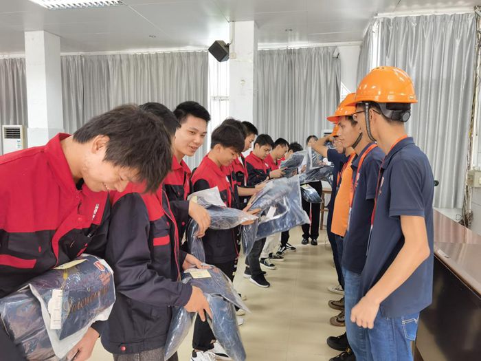 廣西歐日電梯服務集團有限公司維保培訓團隊向訂單(dān)班學生頒發工作服