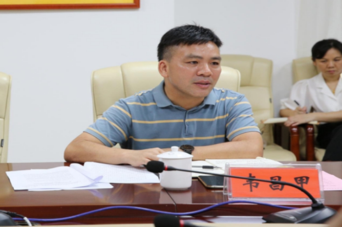 學院黨委副書記(jì)、紀委書記韋昌甲向督導(dǎo)組匯報學院疫情防控自查自糾等工作(zuò)