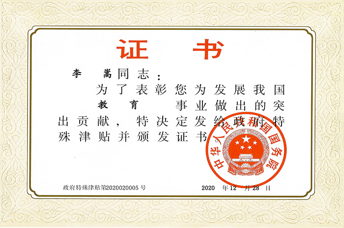 喜(xǐ)訊:我院李嵩老師獲批享(xiǎng)受國(guó)務院政府特殊津貼