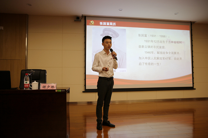 學生工(gōng)作科青(qīng)年黨(dǎng)員謝少林同(tóng)誌,以“講好黨(dǎng)史故事 傳承紅色基因”為主題,通過分享“孤膽英雄”——張國富不炫耀功名,功成後隱(yǐn)姓埋名(míng)建設家鄉,病(bìng)危(wēi)也不給黨和國家添(tiān)麻煩的感人故事,鼓勵 廣大黨員幹部和入黨積極分子 應該將黨史(shǐ)學習與自(zì)身發展(zhǎn)緊(jǐn)密聯係在一起,將自己擺到黨的百年光輝曆程的曆史新方位之中,將黨史學習所得落實到行(háng)動中,從身邊小事坐起,以自身(shēn)行(háng)動去感染(rǎn)和帶動身邊的人共(gòng)同樹立遠大的理想信念,為國家和民族的複興貢(gòng)獻力量。
