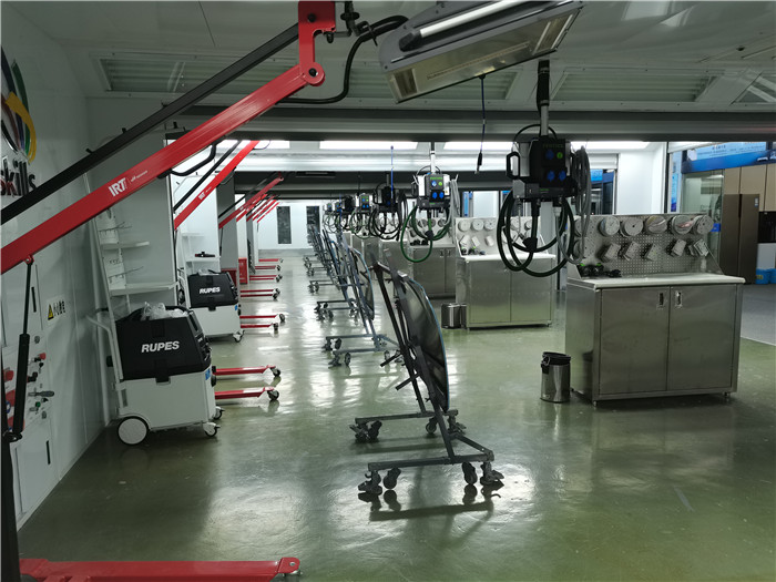 基地建設得到了國家及自治區人社部門的大力支持,先後投(tóu)入700多萬元建設,目前購置了(le)德國費斯托無塵幹磨係(xì)統、意大利路貝獅(shī)移動幹磨係(xì)統(tǒng)、德國薩塔噴槍、英國特威噴(pēn)槍、意大利烤燈、寶中寶水性漆噴漆房、德國薩塔勞保護具等係列、配套的國際先進噴塗設備。基地使用德國巴斯(sī)夫水性漆以及美國龐貝捷水性漆等安全、環(huán)保的實(shí)訓塗料。環保無塵(chén)幹磨房、調漆房、環保水性噴漆房、會議室、培訓室等配套設施設(shè)備,除能滿足學生的日常訓練外,也(yě)完全能滿足(zú)企(qǐ)業員工(gōng)技能提升培訓,技能競賽舉辦及(jí)集訓等功能。