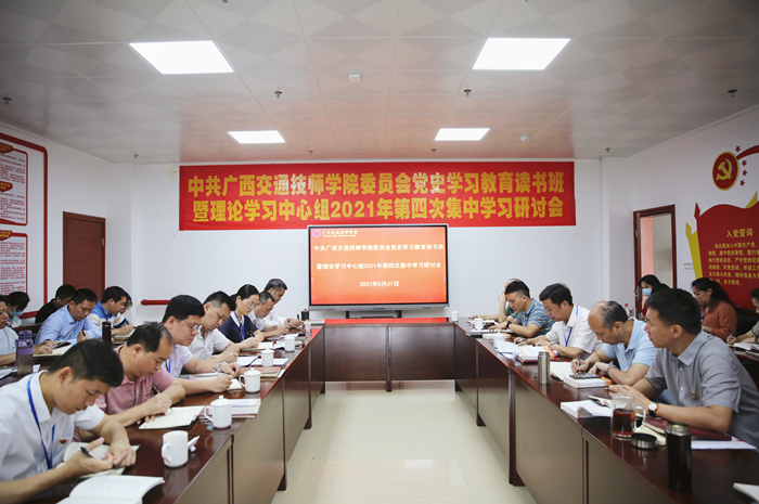531日上午,廣西(xī)交通技(jì)師學院黨委黨史學習教育讀(dú)書班暨理論學習中心組2021年(nián)第(dì)次集中學習研討會在邕武校區(qū)召開,學院領導、中層領導幹部和校辦企業負責人參加會議,會議由學(xué)院黨委書記鍾修仁同誌主持。
