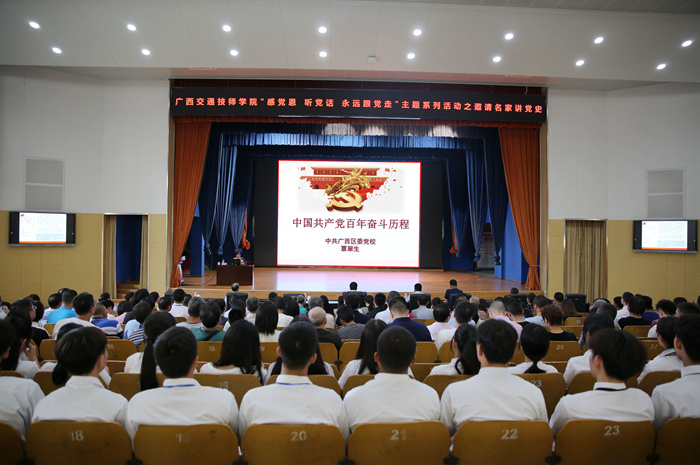 根據學(xué)院黨史學習教育實施方案的工作部署和(hé)要求,2021年(nián)5月12日下午,學院在(zài)邕武校區禮堂舉(jǔ)辦“感(gǎn)黨恩 聽(tīng)黨話 永(yǒng)遠跟黨走”主題係列活動(dòng)之邀請名家講黨史專題黨課,廣西自治區黨(dǎng)校黨史黨建教研部正高級教授覃翠生蒞臨現場授課,學院領導班子(zǐ)、黨員、入黨積極分子和優秀青年學生團員代表約180人參加,黨課由學院黨委書(shū)記鍾(zhōng)修仁同誌主(zhǔ)持。