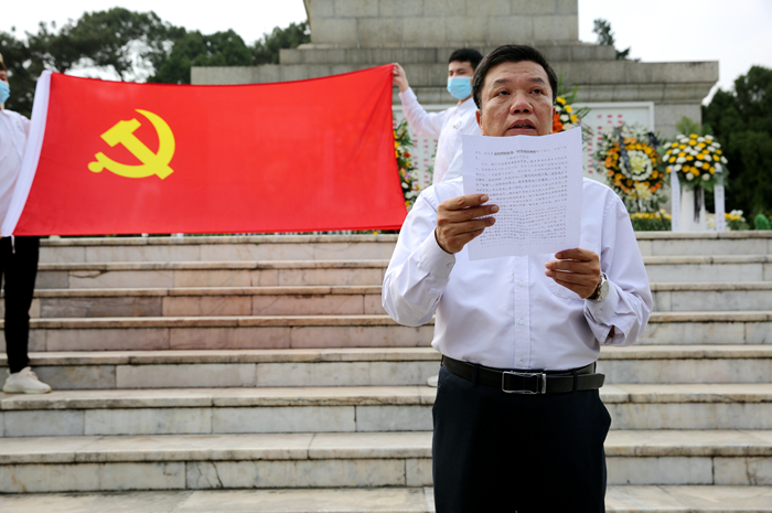 全體黨(dǎng)員代表在革命(mìng)烈士紀念碑前重溫入黨誓詞