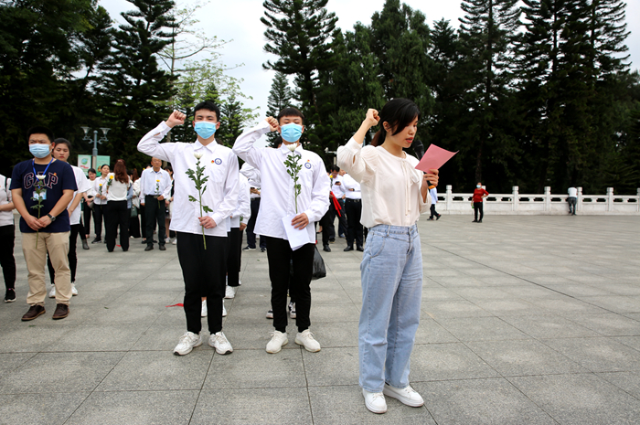 全體青年團員代表在革命烈士紀念碑前重溫(wēn)入團誓詞