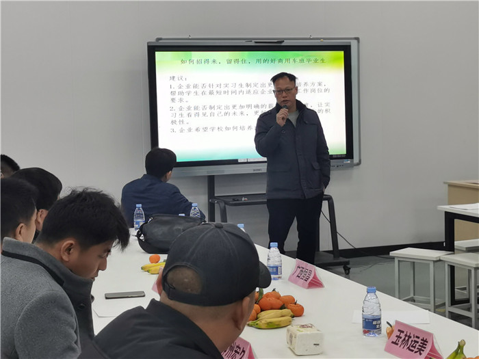揭牌儀式結束後,學院與企業召開了校企(qǐ)合作交流會。會(huì)上,商用(yòng)車教(jiāo)研室主任張東山向到場的企業領導介紹了商用車基地建設情況、班級創辦情況、師(shī)資力量等(děng),提出:人才的培養需要學校、企業及(jí)各屆人士的共同努力,共同承擔社(shè)會責任,希(xī)望企業能為畢(bì)業生積極提供良(liáng)好就業環境,同時希望學院與企(qǐ)業加強合作交流,根據企業用人需求製定人才培養計劃,實現人才“招得來(lái),用得上,留得住”的良性(xìng)循環。企業領導代表就校企合作發言(yán):一是(shì)對學院商用車基地的(de)建設和人才培養輸送(sòng)表示感謝;二是介紹學院畢業生到崗就業的具體情況;三是表示將摒棄舊(jiù)思想,改進企業製度、工作環境、人文環境等,爭取暢通人才選用渠道,實(shí)現人才“招得來,用得上,留(liú)得住”的(de)良性循(xún)環。