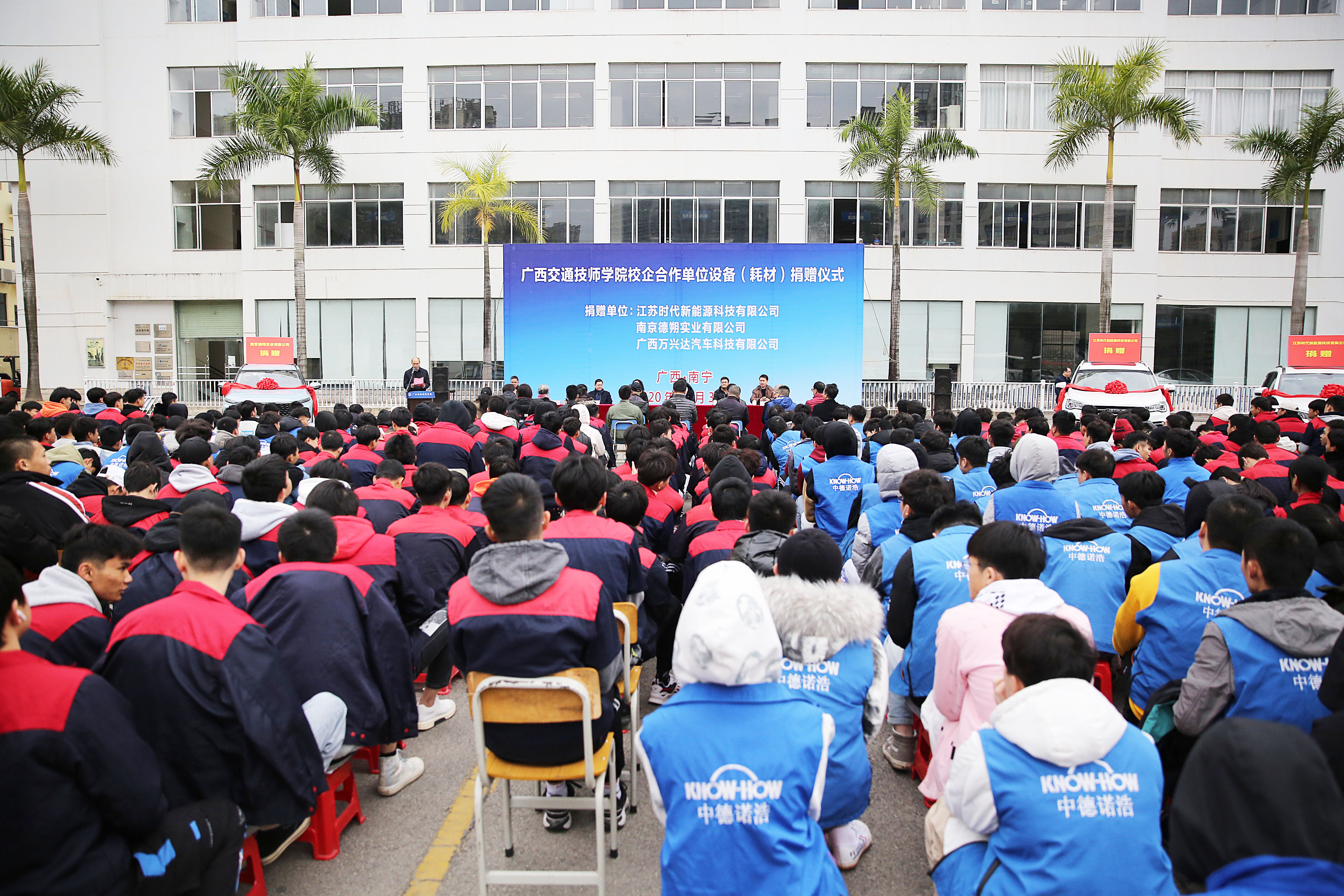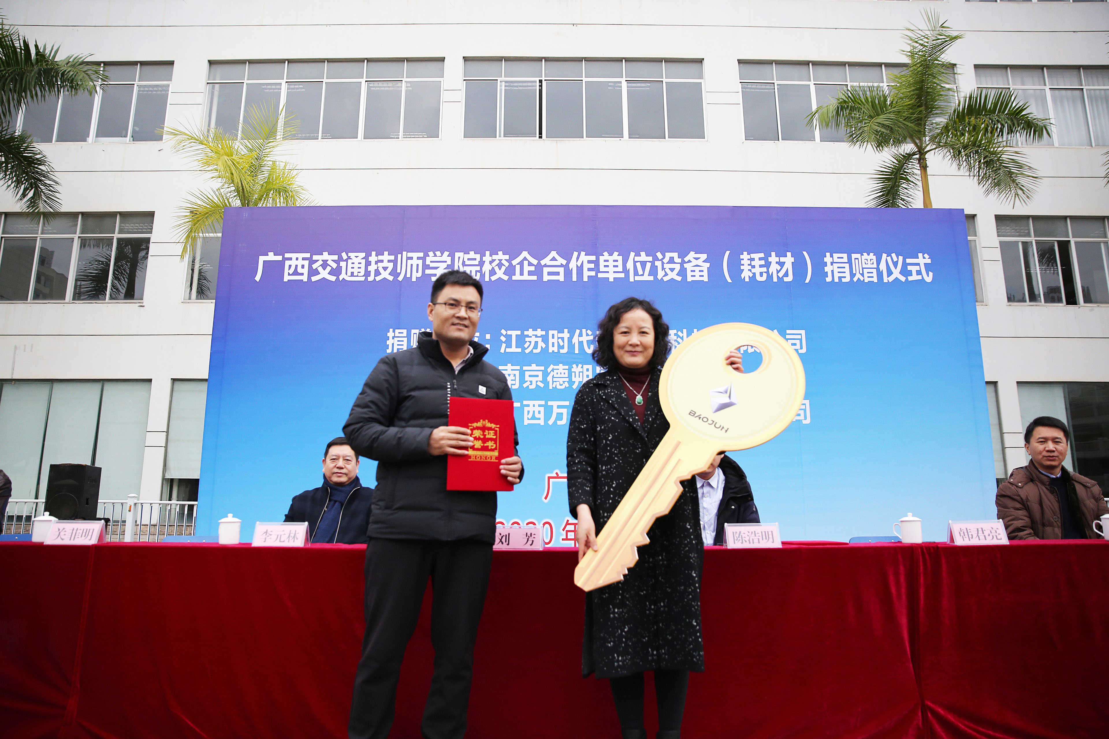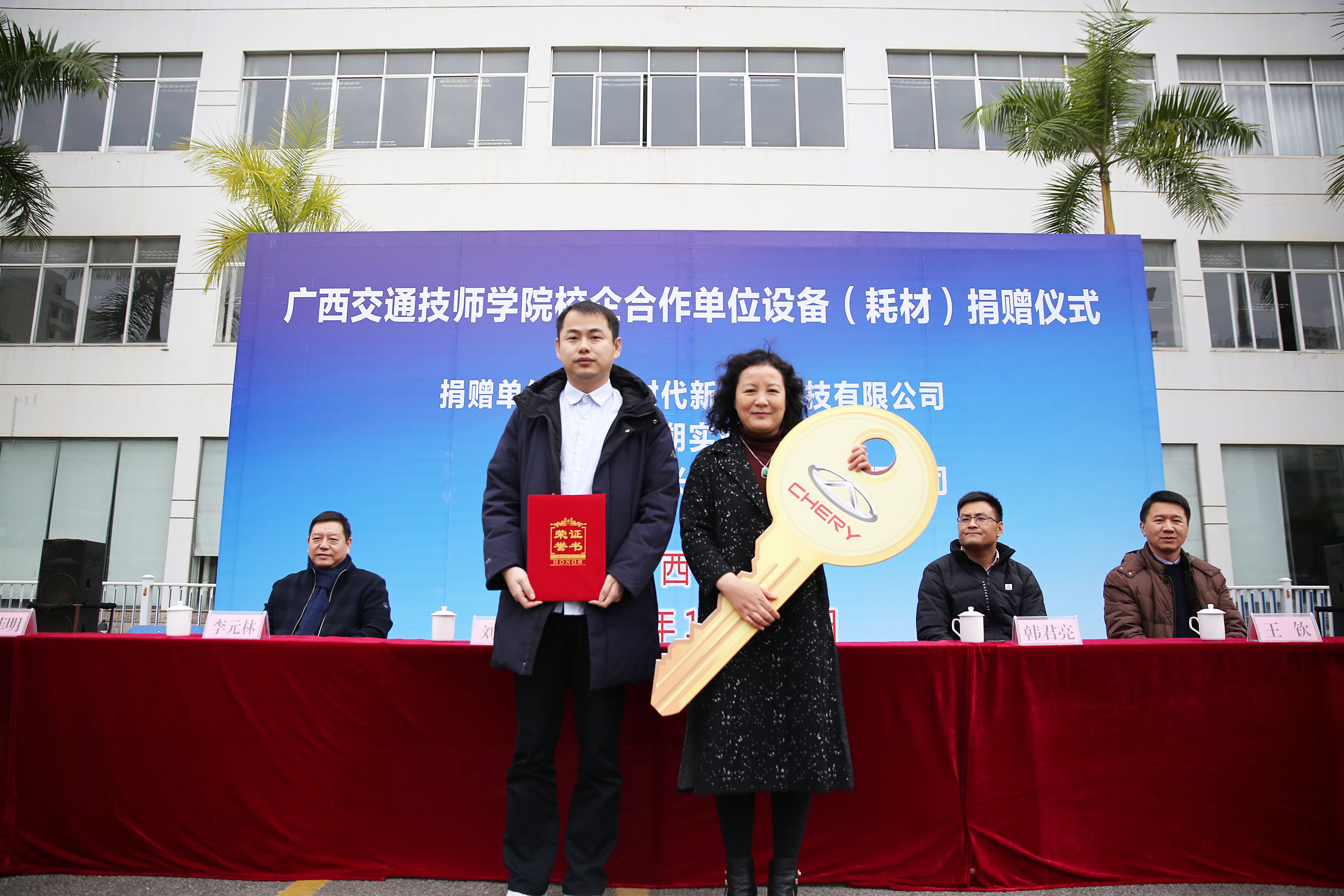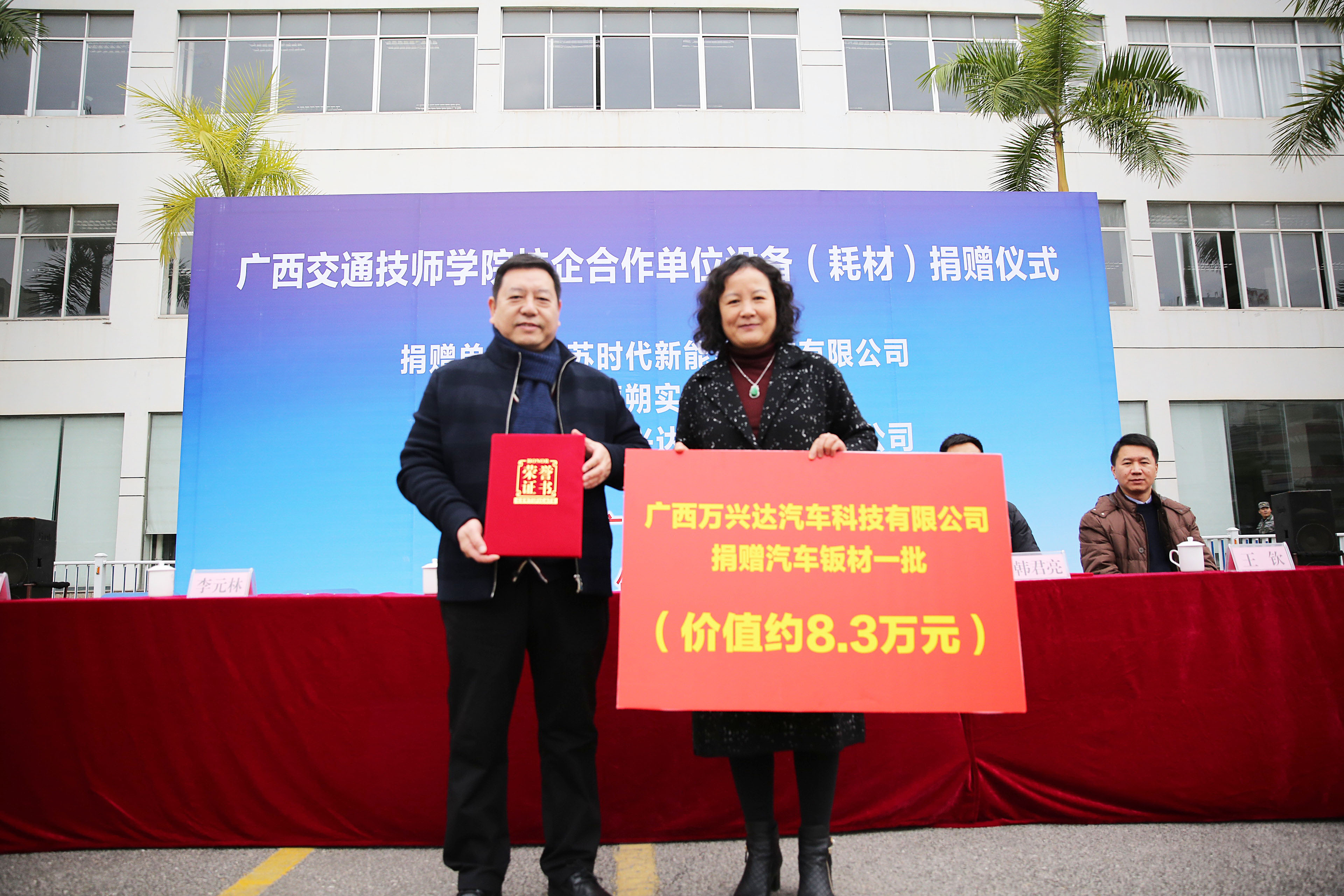 在此次捐贈儀式上,分別有(yǒu)江蘇時代新(xīn)能(néng)源科(kē)技有限(xiàn)公司和南京德朔實業(yè)有限公司(sī)向我(wǒ)院捐贈了3台(tái)新能源教學用車,廣西萬興達汽車科技有限公司向(xiàng)我院捐贈了一批價值約8.3萬元的汽(qì)車鈑(bǎn)金實訓耗材。學院接受了(le)企業的捐贈,並為企業頒發了捐贈證書(shū)。