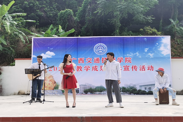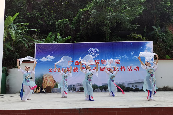 本次教學成果展(zhǎn)示宣傳活動主要以文藝演出、有獎問答的形式進行。文藝(yì)演出包含了舞蹈《鏽》、《火紅的薩日朗》和歌曲《山歌牽出月亮來》等精彩(cǎi)節目,展現了我院濃(nóng)厚的文化氛圍和積極向上的精神風貌,以(yǐ)及近年來我院在教育扶貧(pín)等領域所取得的成果。7月31日在大化白馬、古(gǔ)河的活動中,我院(yuàn)師生與古河文藝隊的演員們聯袂演出,得(dé)到(dào)了現場觀眾的一致好評。