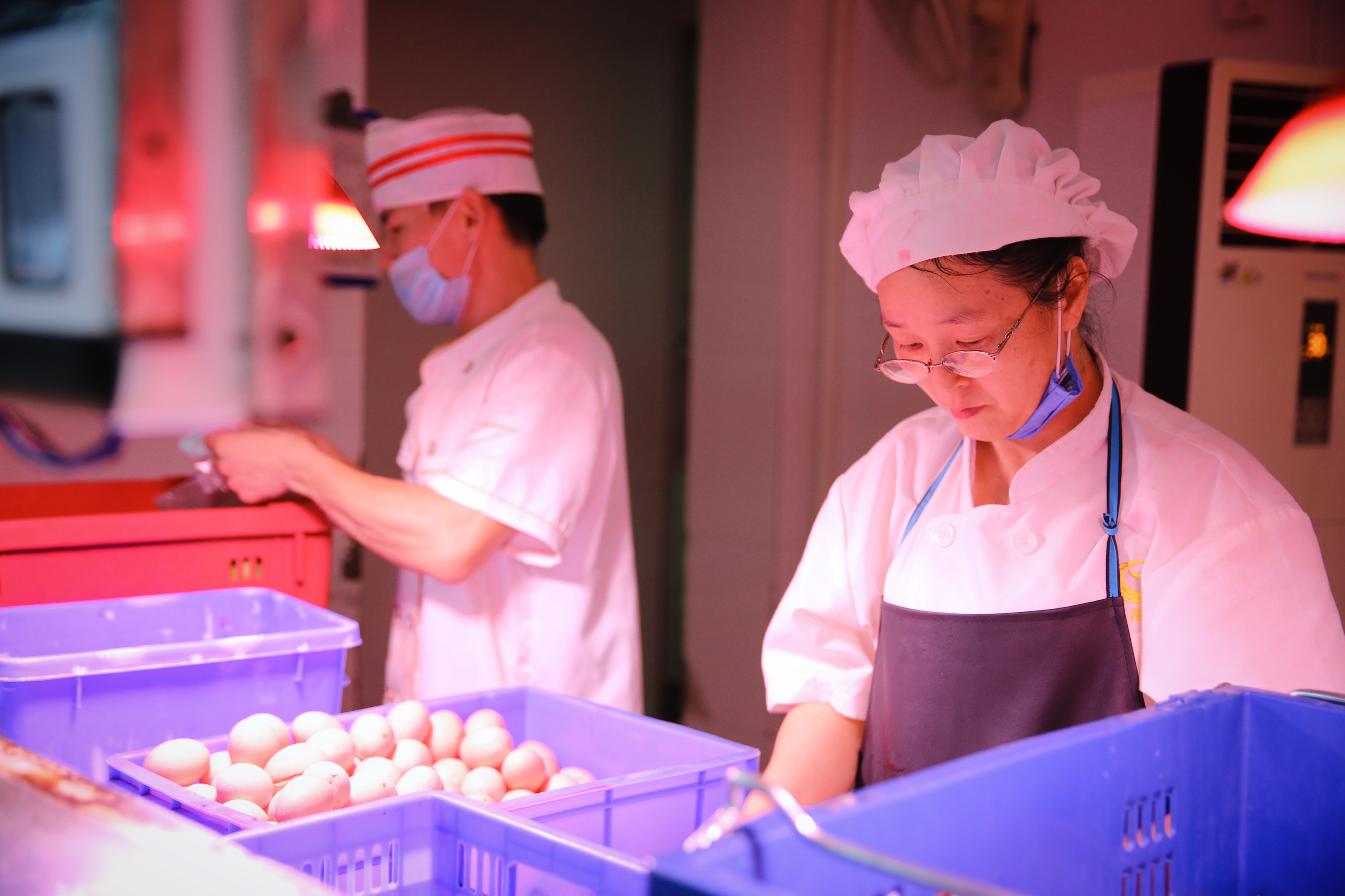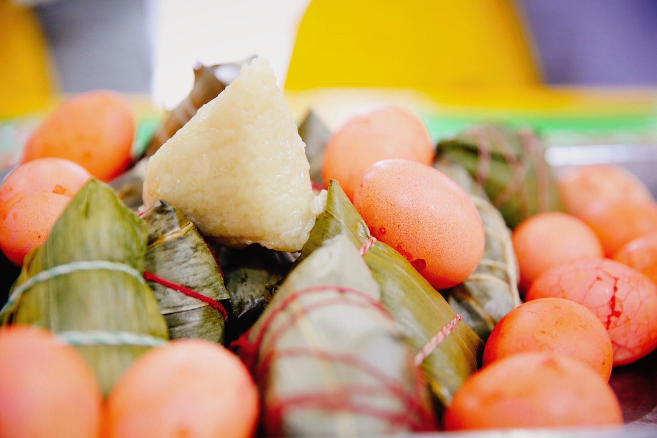 食堂阿姨正在為同學們準備暖心粽子、雞蛋