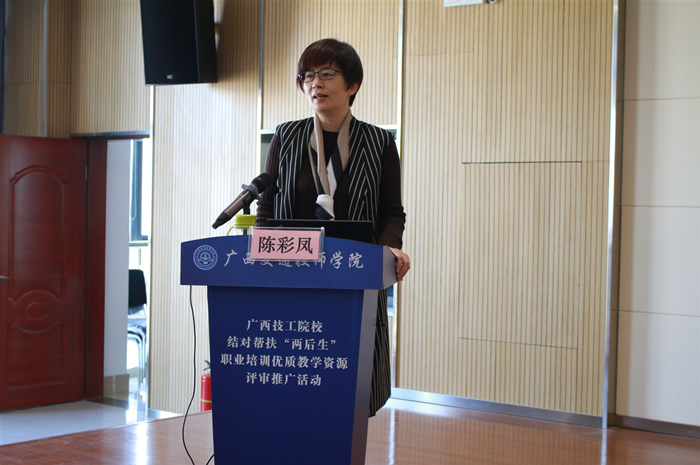 廣西技工院校結對幫扶“兩後(hòu)生”職業培訓(xùn)優質教學(xué)資(zī)源評(píng)審推廣活動現場