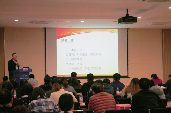 自治區技工教研室覃朝俊主任根據“二八定律”就在工作中“如何答好100分試卷中最後20分題”為題,從讀懂公文、處好關係、熱愛工作、心生靈犀等四個關鍵點,介紹了如何做好“兩後生”職業培訓教學資源開發應用、技工教育教研等工作,為參會人(rén)員上了生動而實用的一課(kè)。