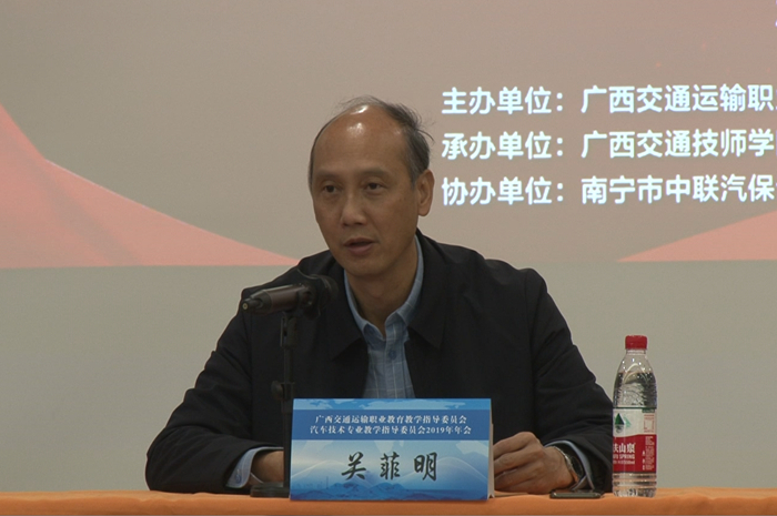 我院關菲明副院長致辭(cí),並結合(hé)本次年會(huì)主題簡要介紹(shào)學院在汽車專業方麵取得的成果。他表示,黨的十(shí)九大作出了建設(shè)“交通強國”的重大(dà)戰略部署(shǔ),這是以習近平同誌為核心的黨中央著眼全局、麵向未來做出的重大戰略決策(cè),是交通運輸行業發展的重(chóng)大機遇,同時也向我們交通運輸職業教育教學(xué)工作(zuò)者提出了更高的標(biāo)準和(hé)更(gèng)嚴的要求。本次年會的召開既是全區交通運輸職業(yè)教育教學工(gōng)作(zuò)者學術交流、經驗分享的一個平台,也是提高各院校教育教學水平的一個(gè)契機。作為首批交通強國建設第一批13個試點之一,廣西的交通事業發展進(jìn)入新時代,麵對新形勢、新任務和(hé)新機遇,希望本次年會能夠加強行業交流,促進產(chǎn)教融合、校企合作,助(zhù)力(lì)廣西職業教育發展。