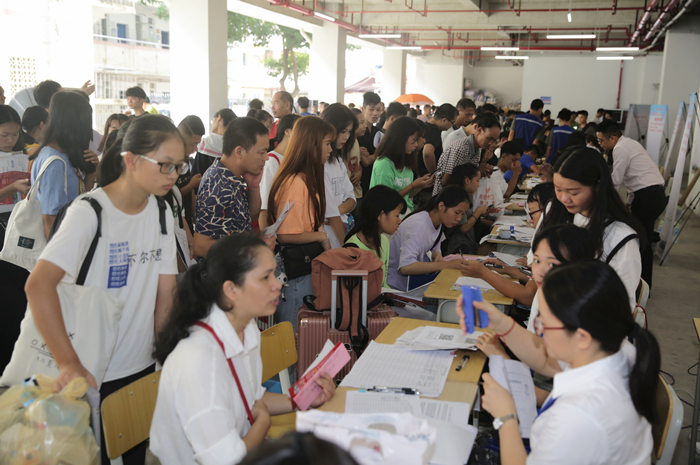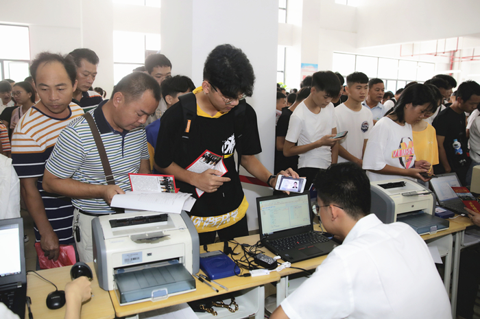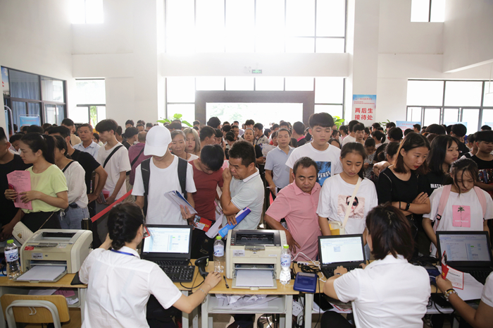報到現場,學校相關部門工作人員、新生班(bān)主任與誌願者分工明確、各司其職,忙碌而有序地開展工作,為新同學和家長提(tí)供熱情、周到、溫馨的(de)報到服務。