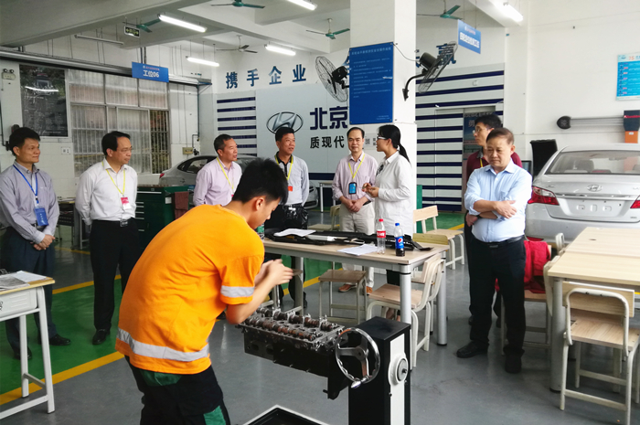參觀(guān)過程中,鍾修仁院(yuàn)長向一行人詳細介紹了學院的辦學曆史、辦(bàn)學規模和(hé)校園建設等情況(kuàng)。一行人先後參(cān)觀了我院大師工(gōng)作室、汽車維修車間、中德諾(nuò)浩培訓基地、汽車鈑金實訓中心、保時捷汽車噴塗實訓中心、新能源(yuán)汽車實訓(xùn)中心、信息(xī)化教學(xué)課堂智創體(tǐ)驗中心以及動車實訓基地等(děng)教學基地和實訓設施,並對學(xué)院先進的教學理念和教學設備給(gěi)予了高度稱讚。