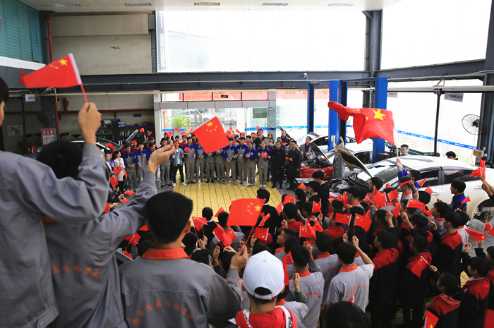 “我和我的祖國(guó),一刻也不能分割,無論我走到哪裏,都(dōu)流出一(yī)首讚歌……”隨著音樂聲響(xiǎng)起,我(wǒ)院師生以及車主們共同高唱《我和我的祖國》、《學(xué)習雷鋒好(hǎo)榜樣》。在優(yōu)美激昂的歌聲中(zhōng),師生們(men)揮動著手中的五星紅旗,用歌聲祝福祖國、紀念雷鋒同(tóng)誌,展現了新時代(dài)我院汽修人朝氣蓬勃的精神麵貌。