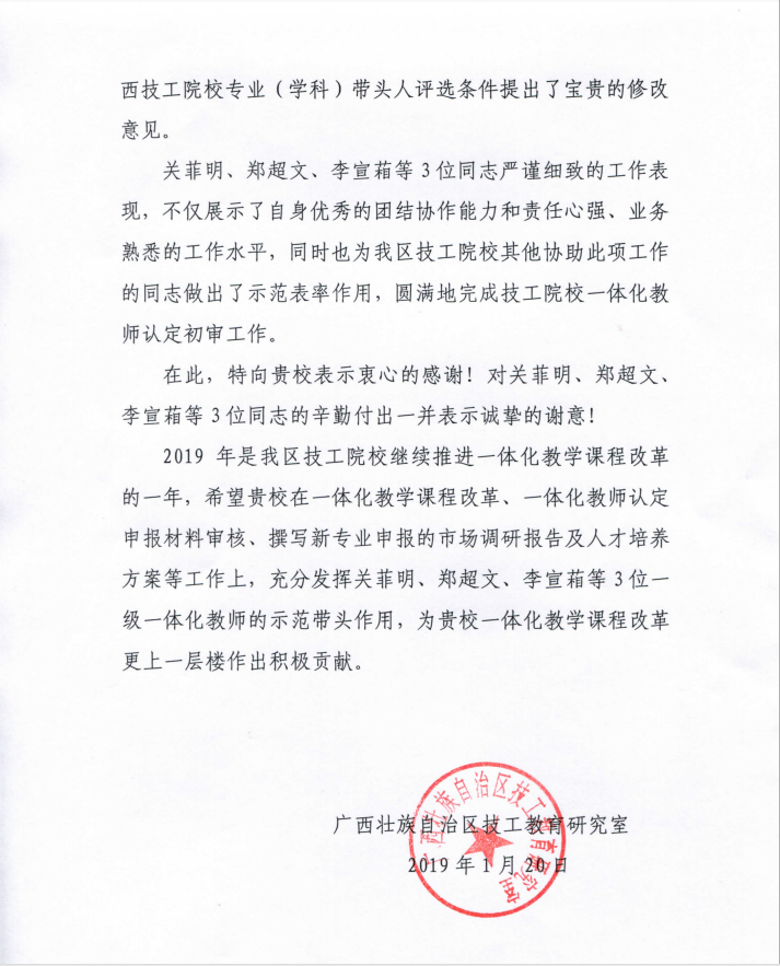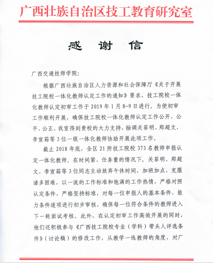 自(zì)治(zhì)區技工教育研(yán)究室致(zhì)我院的感謝信